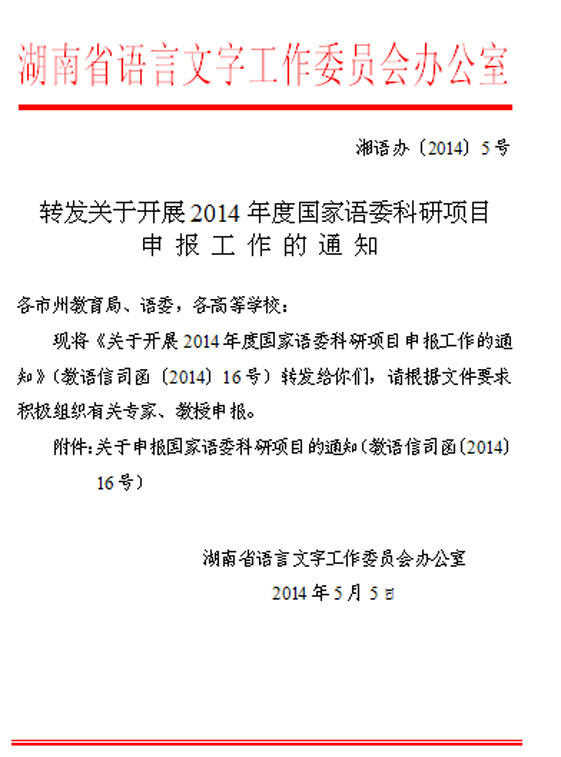 关于组织申报2014年度国家语委科研项目的通知
