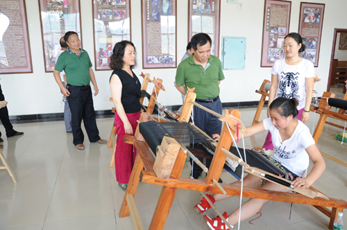 肖凌之一行先后来到学院教学楼、实训楼,非物质文化遗产传习所、展览馆,重点参观了民族艺术系师生创作设计的民族服饰、染画、苗绣、竹篮等民族工艺品,并驻足观看了该系学生的现场纺织操作。随后,肖凌之还与该系部分师生进行座谈,详细了解了师生们的学习、实践、培训和就业情况。