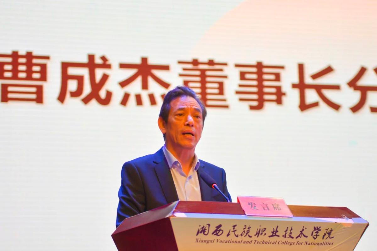 曹成杰是我校前身之一州商校82届物价2班校友,是海口经济学院创始人、董事长,中国民办教育协会副会长,马来西亚美兰大学董事长。他为现场师生分享了自己的创业故事。他从自己在州商校的求学经历讲起,讲述了自己如何在充满挑战与机遇的创业之路上,凭借智慧和勇气,书写出一段从湘西出发,走向全国,走向世界的创业传奇。