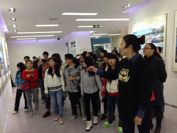 同学们在讲解员的带领下,观看了以巨型沙盘、超大LED屏幕、270度环幕影院、天桥天路情境声光模型等高科技现代技术展现的吉首市城市30年建城史、当代城市规划以及展望吉首城区未来发展蓝图,全面了解了吉首的概况、历史变迁、特色建筑、旅游景点及其它方面的规划。
