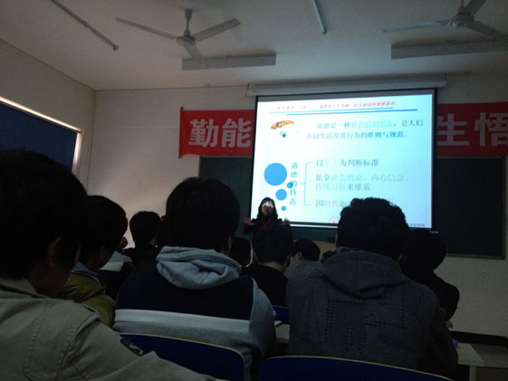 为进一步提高教育教学质量,推进思政部教学研究和课堂教学改革,促进教师之间的经验交流,不断提高教师的教研水平,4月1日下午,思政部在D202教室举行了《职业道德与法律》课程的公开教学交流活动。本次公开课由思政部副主任田萍老师主讲,思政部主任熊谟菊组织思政部全体专职教师集体观摩,院纪委书记刘修洪、院纪委纪检干部廖琛绯全程参与。