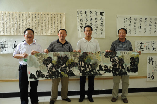 蔡力峰一行步入学院,就在吴正有书记等学院领导的陪同下观看了学院关工委工作展板,初步了解学院关工委工作,随即一路参观了学院教学楼、实训楼、图书馆、书画院。在书画院,蔡力峰兴致勃勃地欣赏了学院教职工的书画作品,特别称赞了几位退休老同志的书法作品。参观结束后,在图书馆七楼会议室召开了座谈会,龙爱东主持座谈会。学院关工委副主任胡和生就构建长效工作机制,奠定参与管理的基础;以“青蓝工程”为载体,积极参与教学管理;以主题教育活动为抓手,参与学生管理;以特邀党建组织员为骨干,积极参与党建工程;以创建和谐校园为目标,积极参与关爱育人工程等五个方面介绍了学院关工委工作。