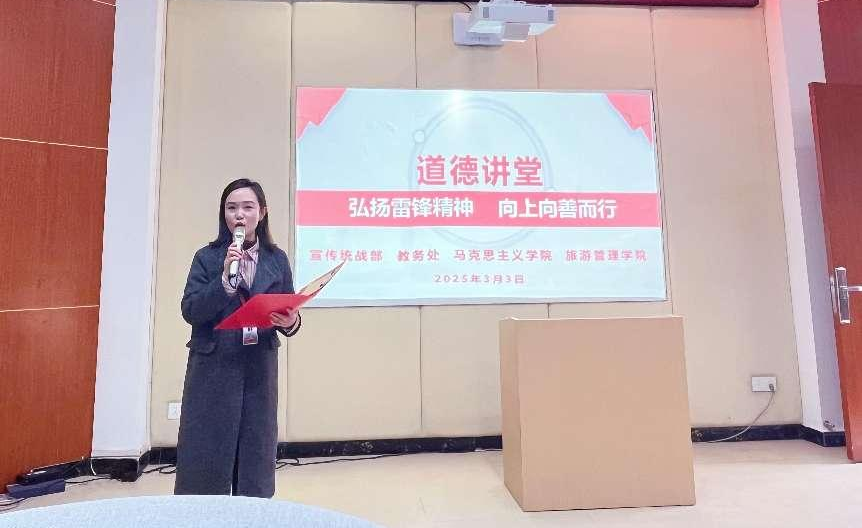 3月3日,在雷锋纪念日到来之际,我校宣传统战部、教务处、马克思主义学院、旅游管理学院联合举办以“雷锋精神”为主题的道德讲堂。百余名师生在沉浸式学习中感悟雷锋精神内涵,激发新时代奋斗热情。