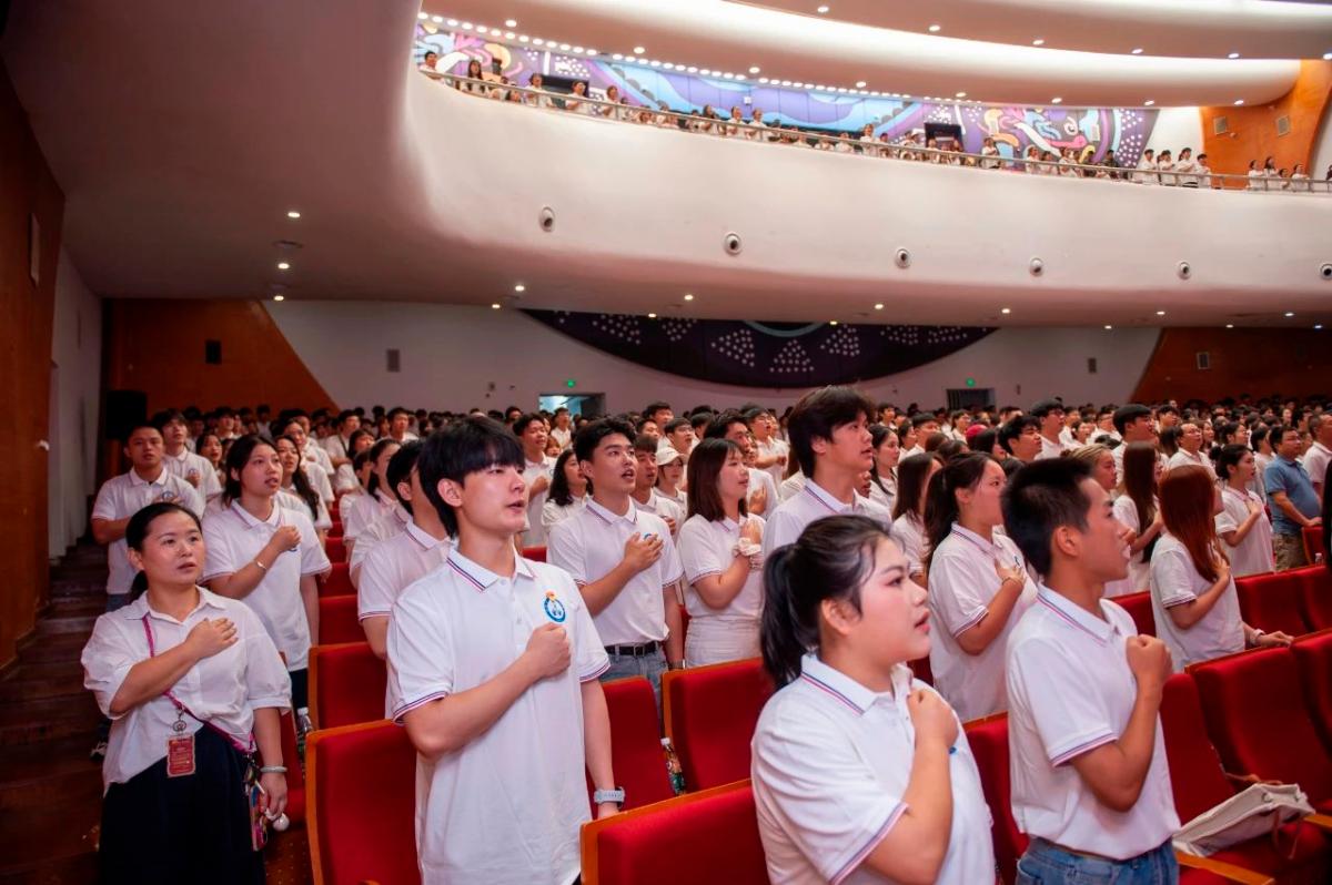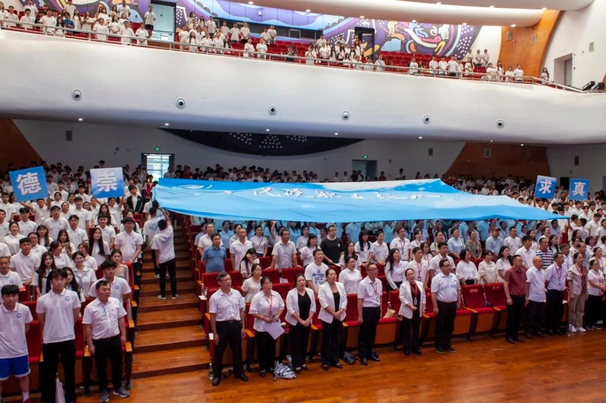 当天下午1时30分起,毕业生们陆续入场,领取定制毕业衫并书写梦想纸条投入“时光胶囊”,在签到墙签名留念。活动现场还设置了“时光走廊”,展示本届学子三年来校园活动照片和班级合影。暖场环节中,大屏幕循环播放毕业生纪念视频,现场温情满满。下午2时30分,毕业典礼在庄严的国歌声中正式拉开帷幕。