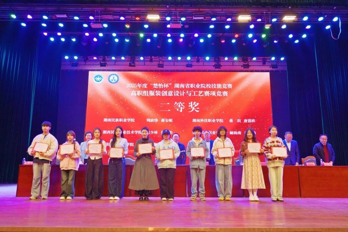 3月23日晚,经过赛事组委会及承办方湘西民族职业技术学院认真筹备、精心组织,2025年度“楚怡杯”湖南省职业院校技能竞赛高职组服装创意设计与工艺赛项圆满完成了预定的赛程,成功落下帷幕。省派赛点第一副主任张松、湘西职院党委书记谢绍猛出席闭幕式,闭幕式由我校党委委员、副校长陈杨晖主持。