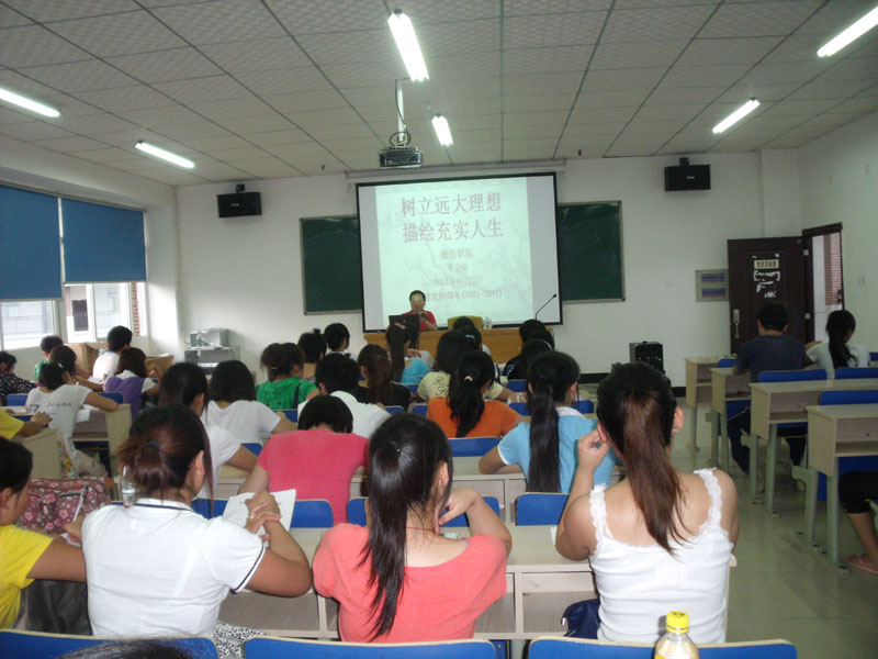 在建党90年之际,我院学生处举行“树立远大理想,描绘充实人生”讲座。讲座于 2011 年 6 月 22 日晚 7 点 ,在教学楼B501教室举行。由学生处徐海燕老师主持,从事学生思想政治教育工作的李金娥科长主讲,院系两级学生会干部120多人参加。