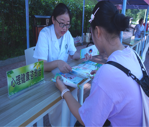 活动当天上午,心理咨询与体验角分为专家义诊区和表达性艺术治疗体验角两部分。曾华、田心波、张秀梅三位心理专家坐镇义诊区,耐心倾听学生在学业、人际、情感等方面的困惑,并提供专业疏导与解答。表达性艺术治疗体验角则由陈丽萍、徐晶晶两位治疗师带领学生进行OH卡牌体验,通过卡牌投射帮助学生探索内心情绪,有效释放压力。同时,宣传资料发放区工作人员向学生分发心理健康手册,内容涵盖睡眠、情绪、压力管理等实用知识,引导学生关注心理健康。