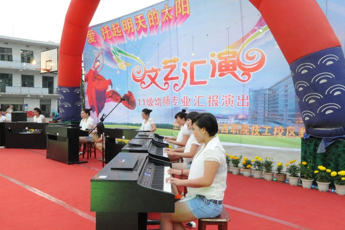 为展示我院幼师专业教学成果, 6 月20日 晚7时,学院在技工校区举办了2011级幼师专业文艺汇演。学院副院长杨建平与校区全体师生一同观看了演出。