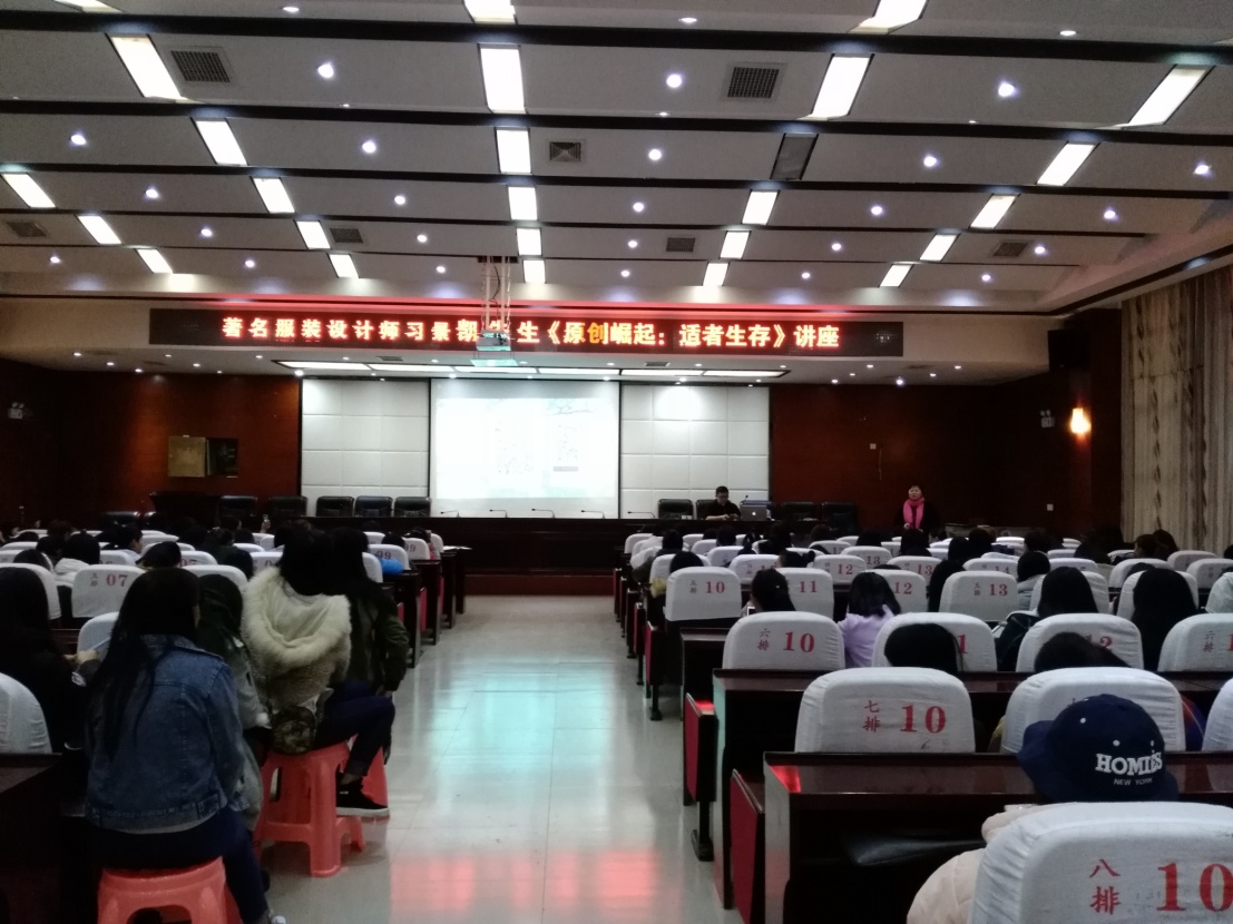11月22日,民族艺术系邀请全国十佳新锐著名服装设计师习景凯先生来我院为服装设计专业的师生们作了以“原创崛起:适者生存”为主题的讲座。民族艺术系专业教师、三年制大专、五年制以及即将毕业的服装专业学生共计百余人在D区会议室参加讲座。