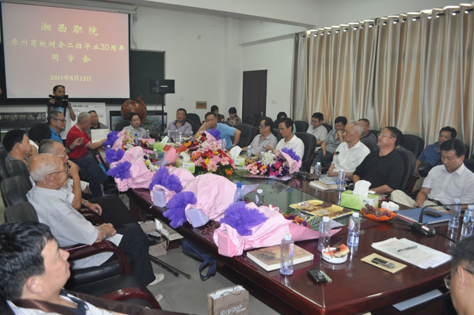 李光寒院长将湘西职业教育资源整合、学院最近几年建设发展情况向校友作了介绍。杨振富老师、柳思维教授等科任老师风趣地谈了当年师生在校趣事,顿时,会场欢声笑语,气氛活跃。会议最后,吴正有书记代表学院对校友回母校聚会表示欢迎,对校友们“感恩母校、回报母校”,成立“志高”奖学金的助学捐赠行动表示衷心的感谢,希望广大校友进一步加强与母校的联系,常回来看看,为母校的建设发展献计献策,祝愿校友们在各自工作岗位上再创佳绩,以行动回报社会。