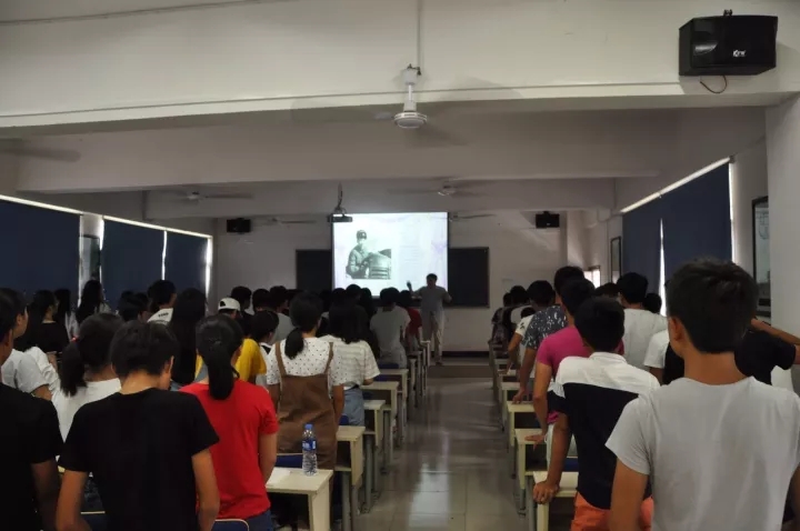 此次道德讲堂围绕“唱歌曲、诵经典、看短片、讲故事、谈感悟、做点评”六个环节展开。全体同学在彭继林的带领下,共同学唱了经典歌曲《学习雷锋好榜样》。以学习这首歌曲的背景人物雷锋为切入点,彭继林引出了中华民族以助人为乐为代表的向善的传统文化,并带领大家诵读了部分宣扬向善向上的中华传统文化经典。随后,在观看了一部毛泽东同志的短片后,彭继林为同学们介绍了毛泽东同志是如何继承和弘扬中华传统文化,并将其应用在他的革命和治国理念中的。彭继林通过讲述张思德同志的故事,解读了毛泽东将为人民服务注入到中华传统文化,重塑民族之魂。同时他也列举了部分传统文化中一些糟粕之处,希望同学们能够辩证认识传统文化,能够分辨出是非善恶,去其糟粕,弘扬正气。
