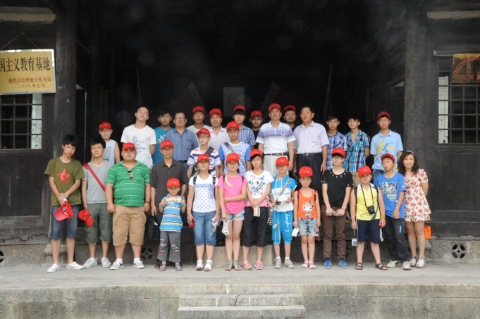 7 月8日 上午,三十名青少年在湘西职院关工委的组织下,来到永顺县塔卧的爱国主义教育基地开展缅怀革命先烈纪念活动,接受爱国主义教育。