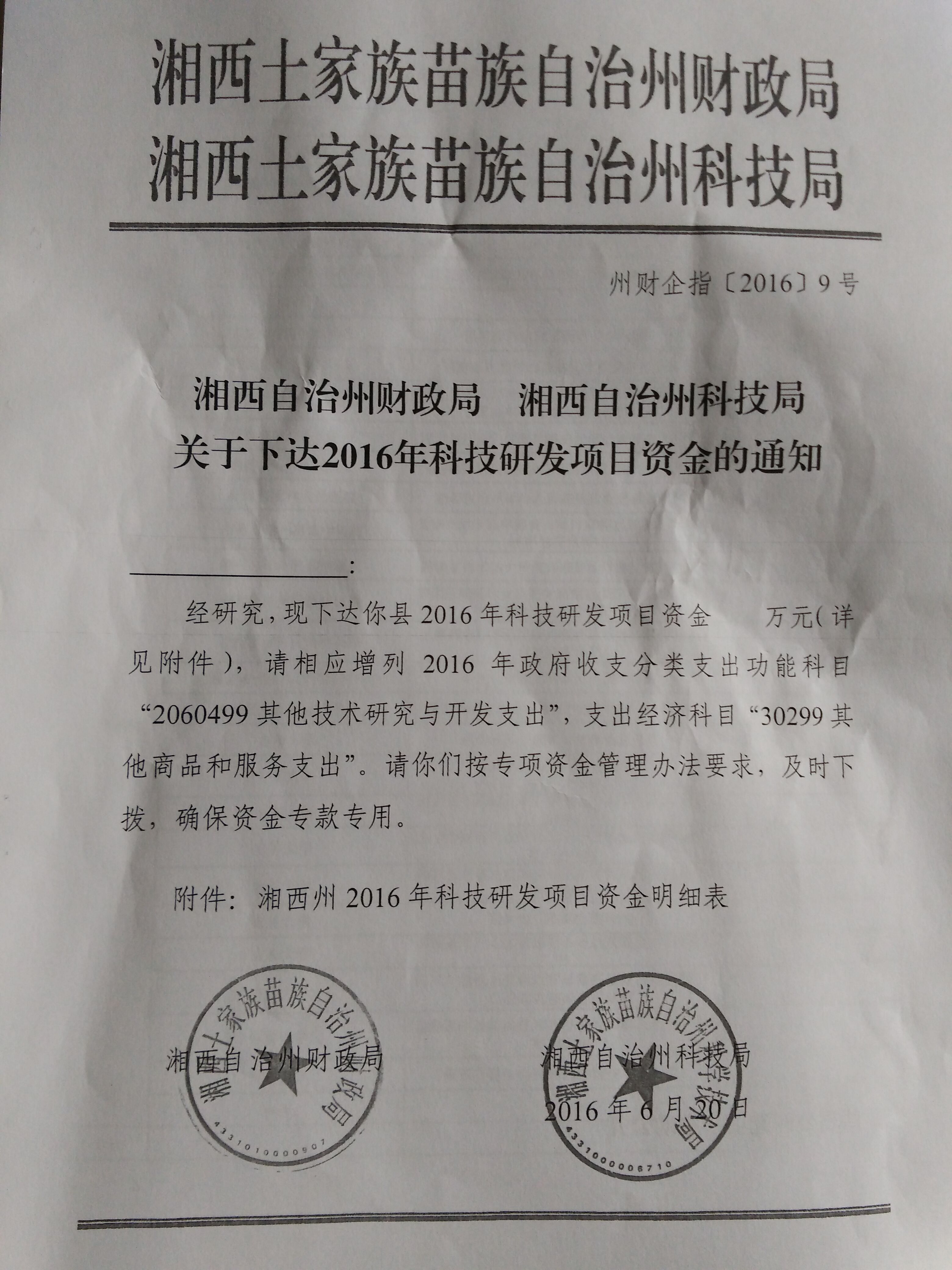 近日,湘西自治州科技局和财政局联合下文,确定湘西职院生物工程系主持的“猕猴桃细菌性溃疡病抗性砧木的选育与研究”为湘西自治州科研重点项目给予立项,配套科研资金达100万元,这是我院迄今为止获得的最高科研项目资助。
