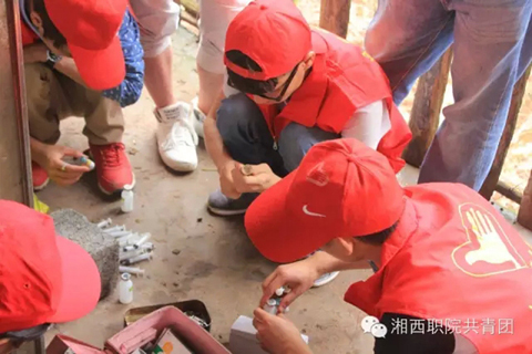 5月31日上午,院团委畜牧兽医协会全体成员、社团部干部在社团指导老师汤起武的带领下赴吉首市双塘镇进行义务出诊,免费对动物进行防疫检疫、诊疗改割。