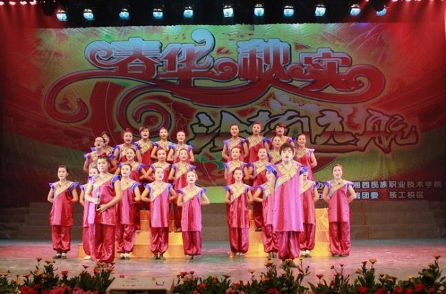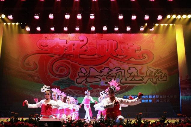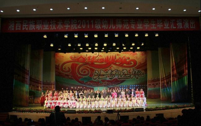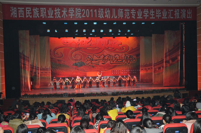12 月18日 下午,学院2011级幼师专业在湘西民族大剧院举办了一场名为“春华秋实,让梦远航”的文艺汇演,来到现场的1000余名师生欢聚一堂,饱享了这场完美视听盛宴。学院党委书记吴正有,副书记曹义文,副院长罗红、杨建平、符华西,纪委书记刘修洪等院领导出席并观看了文艺演出。