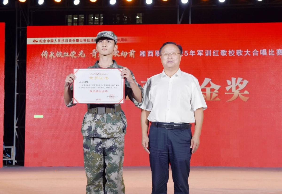 为纪念中国人民抗日战争暨世界反法西斯战争胜利80周年,深化爱国主义教育,传承红色基因,9月27日晚,我校举行了“传承铁血荣光,青春高歌向前”军训红歌校歌大合唱比赛。学校党委书记谢绍猛等校领导出席活动,2025级全体军训新生参加本次活动。