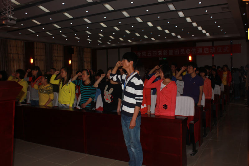 会上,新团员进行了庄严的入团宣誓,团委书记田利华宣读了我院经济贸易系荣获全省五四红旗团总支、学院团委荣获州直五四红旗团委、应用外语系荣获全州五四红旗团总支的喜报。另外还表彰了一批学院优秀团总支、优秀团支部、十佳团干、十佳青年、优秀社团、优秀社团指导老师、青年志愿者、优秀团干,优秀团员。陈娜老师讲解团员e信通平台的使用,旨在团员青年中建立一个交流互动以及实践、就业等信息的服务平台。