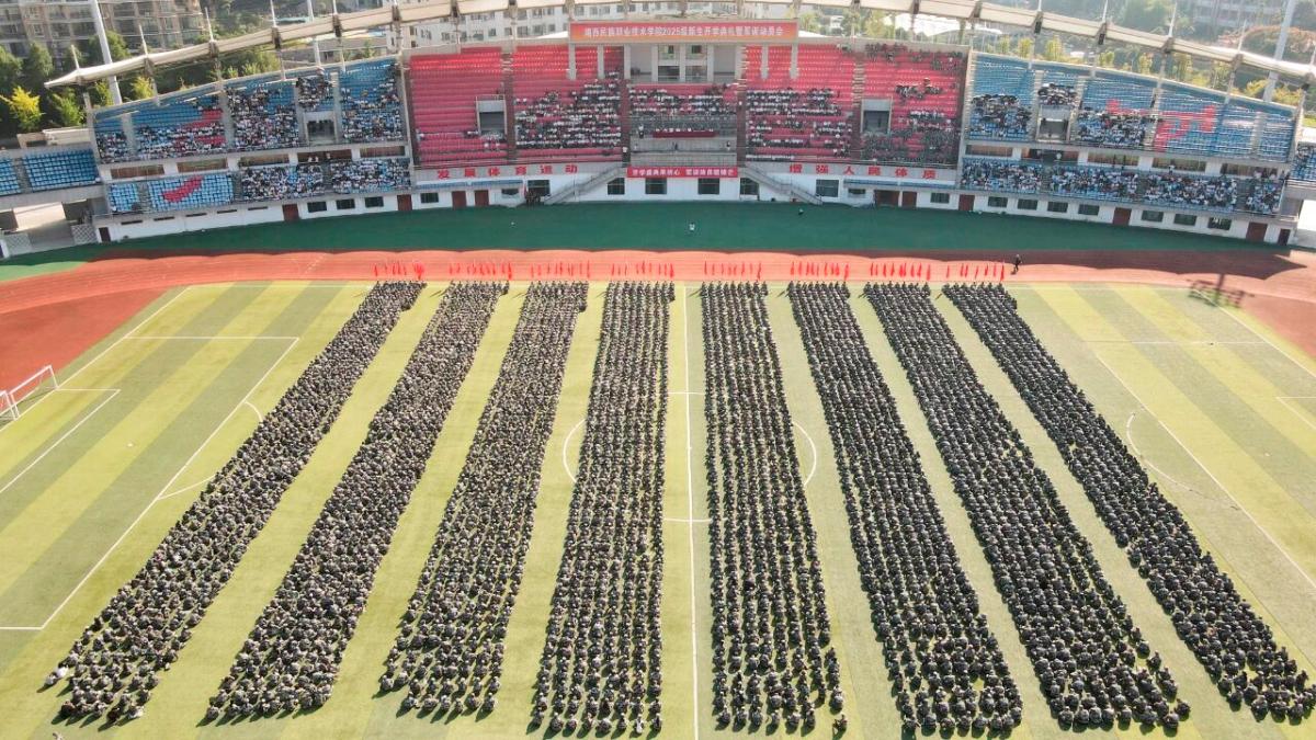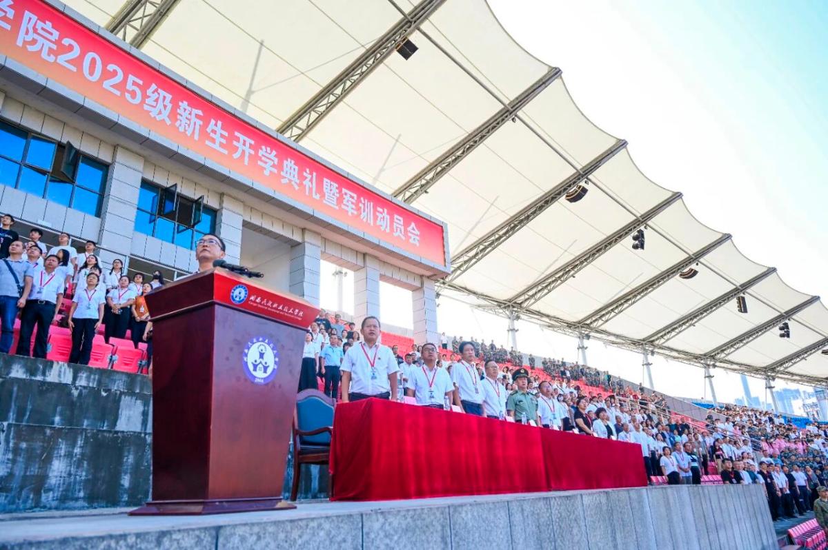 丹桂飘香,金秋送爽。今天上午,我校在文体中心体育场举行了开学典礼暨2025级新生军训动员大会。州委常委、吉首军分区政委易长运,我校党委书记谢绍猛、校长翁波等领导出席典礼,全校师生参加典礼,近5000名新生身着迷彩、精神昂扬,以饱满的姿态迎来大学生涯的第一课。典礼由校党委副书记、副校长陈杨晖主持。