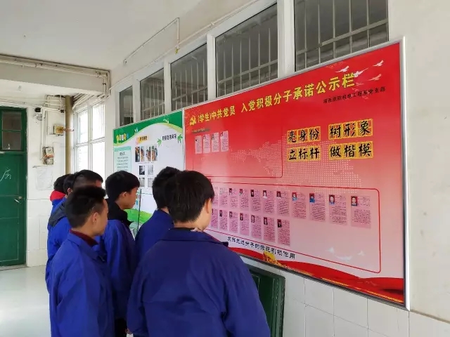 目前,湘西职院机电系党支部学生党员有28名,其中在校学生党员4名,2016年组建了学生党小组,2016年经考察列为入党积极分子的学生有22名。此次承诺公示栏的设立,旨在公开以上人员身份及承诺事项,接受同学们的监督,同时,通过发挥先进分子的示范作用,用实际行动感染、带动广大学生争先创优,赶超先进,从而提升党在学生群体中的凝聚力和号召力。