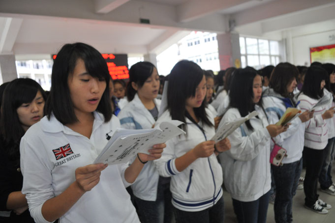 据学院“迎检”工作负责人介绍,学院领导重视语言文字规范化工作,多次组织教职员工学习《教师法》、《教育法》、《中华人民共和国通用语言文字法》等法律法规,建立相应的规章制度,把使用普通话和规范用字作为教师课堂教学、执教能力测评、晋级晋职的考核依据之一。学院7名省级普通话水平测试员不定期举办培训班,为学院师生普通话水平提质增量,近两年,学院的普通话测试达标率达92%。每年定期在“推普周”开展活动外,其他时间里,“推普”活动也是精彩纷呈,“演讲赛”、“书法赛”、“普通话比赛”等活动时常在学院内开展,应用外语系已持续四年开展了“弘扬国学传统,晨读《弟子规》”活动。学院有越来越多的人参与讲普通话、写规范字的行列当中了。