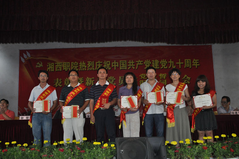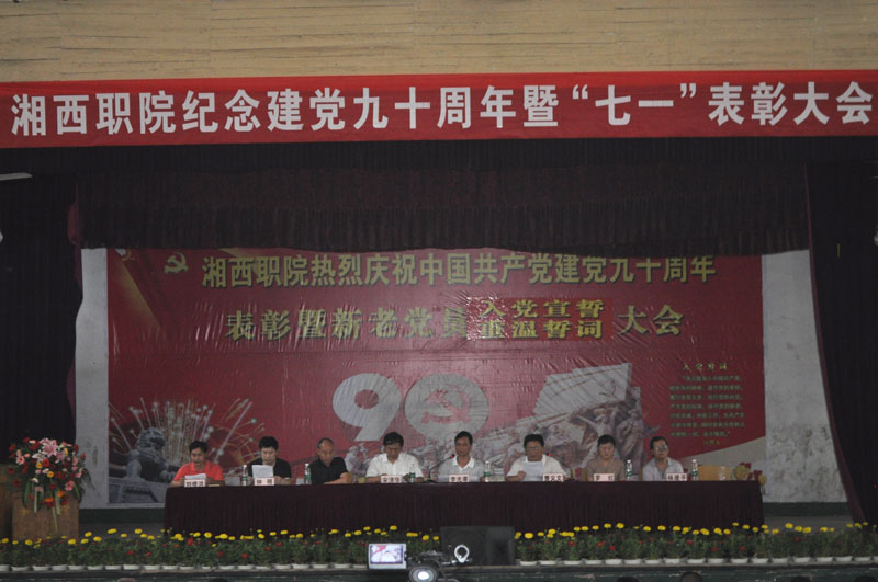 大会在雄壮的国歌声中开始,随后,纪委书记刘修洪宣读了《关于成立中共湘西民族职业技术学院委员会党校校务委员会的通知》,副院长刘辉宣读了州直工委《关于表彰先进基层党组织、优秀共产党员和优秀党务工作者的决定》,副院长杨建平宣读了《关于表彰先进党支部、优秀党务工作者和优秀共产党员的决定》,副院长宋清华宣读了《关于表彰“十佳教职员工”的决定》,副院长罗红宣读了《关于批准魏雪竹等21名同志为中共正式党员的决定》,副院长符华西宣读了《关于批准欧阳圣君等91名同志为中共预备党员的决定》,随后,副院长罗红同志带领预备党员及全体党员向党旗宣誓和重温入党誓词。