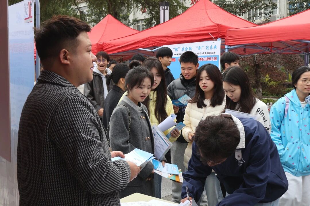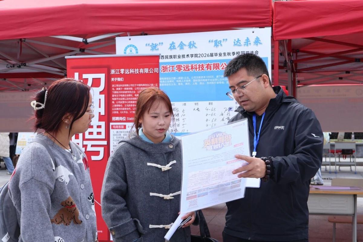 为促进2026届毕业生高质量就业,深化校企合作,11月11日上午,由湘西民族职业技术学院与湘西州人力资源和社会保障局联合主办的2026届毕业生秋季校园双选会在学校中轴广场举行。本次双选会共吸引来自农林牧渔、机械制造、信息技术等行业的240家企业参加,提供就业岗位9312个,为广大毕业生搭建了广阔的就业平台。