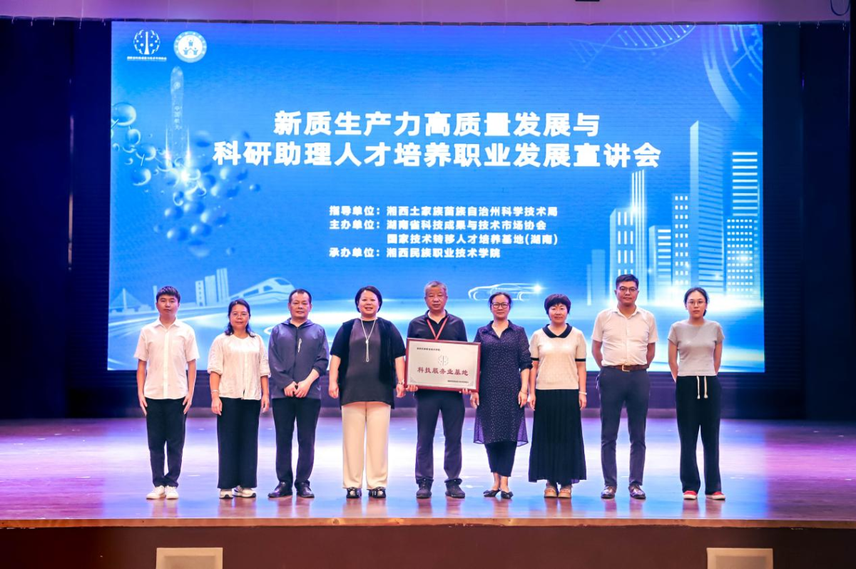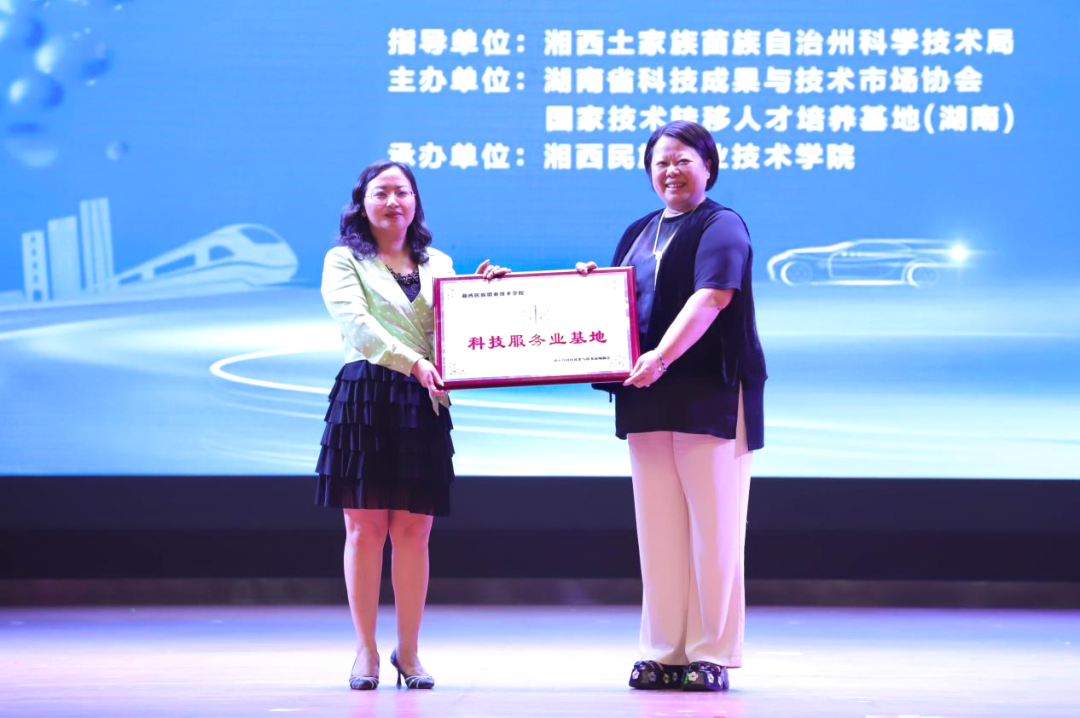 会上举行了湘西民族职业技术学院科技服务业基地授牌仪式,标志着学校在产教融合领域迈出关键一步。该基地将充分发挥学校职业教育资源优势,紧密对接湘西地区产业发展需求,着力打造集"技术研发-成果转化-企业孵化"于一体的综合性服务平台,有效弥补了武陵山片区科技创新服务体系的短板。