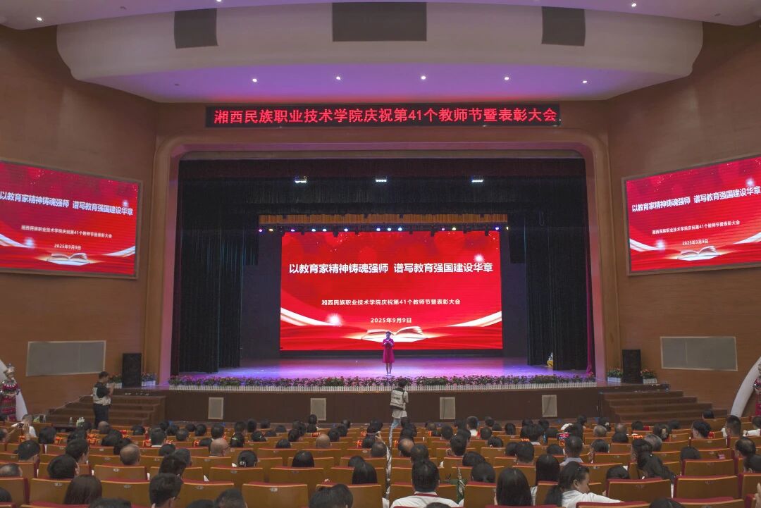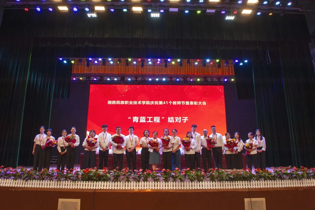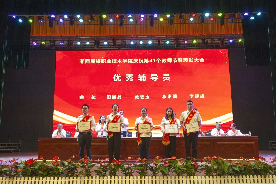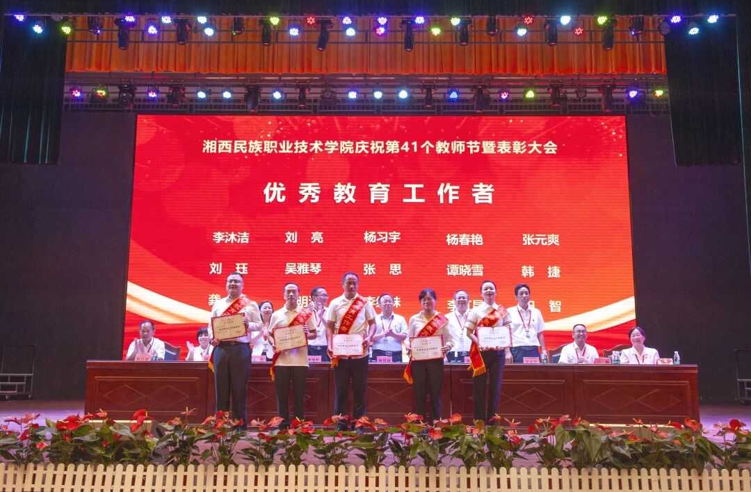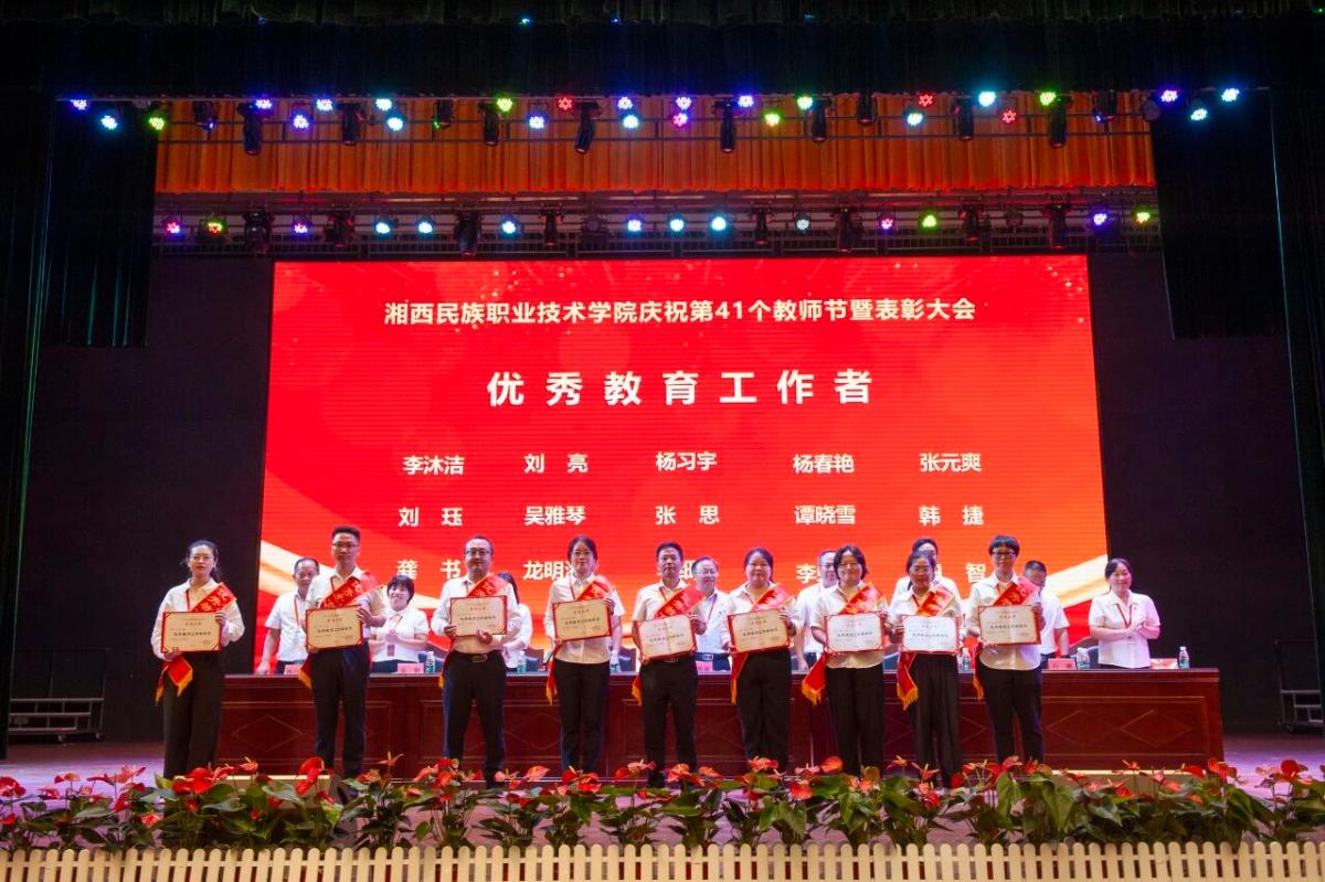 学校党委副书记、副校长陈杨晖宣读了《湘西民族职业技术学院关于表彰2025年度优秀教师等先进个人的决定》。学校党委班子成员现场对28名受表彰的“优秀教师”、5名受表彰的“优秀辅导员”、15名受表彰的“优秀教育工作者”现场进行了颁奖,并向从教三十年教师颁发了纪念品。
